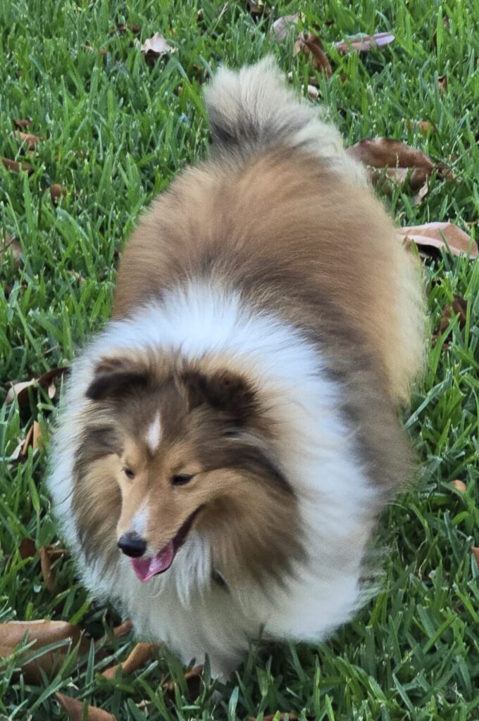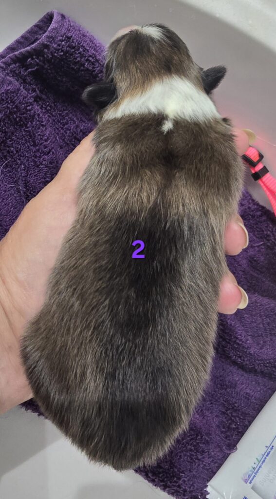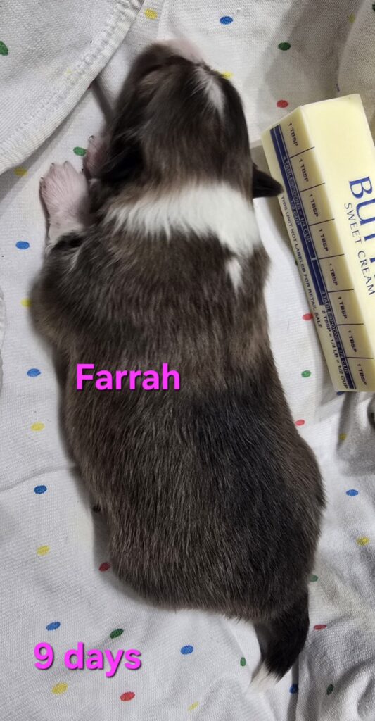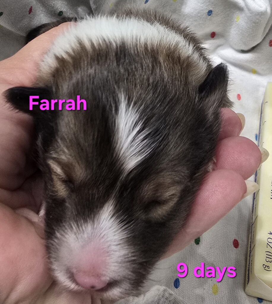 Farah is a beautiful little AKC mahogany sable girl. She has a nice white collar with a small break on both sides, 4 white socks, a skinny blaze she may not keep and a white tail tip. I expect her face will look very much like her dads.